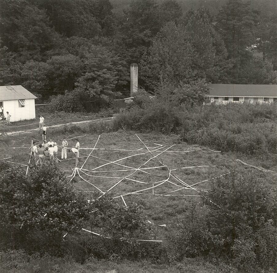 Ich musste an Josef Albers denken. In Black Mountain fotografierte er den Alltag auf dem Campus, ich hatte ihn vorgestern auf einem Erdbeerbeet getroffen und es entschlüpfte uns ein Gespräch über die Farbe „rot“, ein geistiges Training, das mich darauf vorbereitete, dass Albers auch beim Abendessen unterrichtete. Die Sommerkurse warfen ihre Schatten voraus. Albert Einstein sollte kommen. Erwin Panofsky, Merce Cunningham und Willem de Kooning. Wo soll Kunst entstehen, wenn nicht hier in der Natur?
